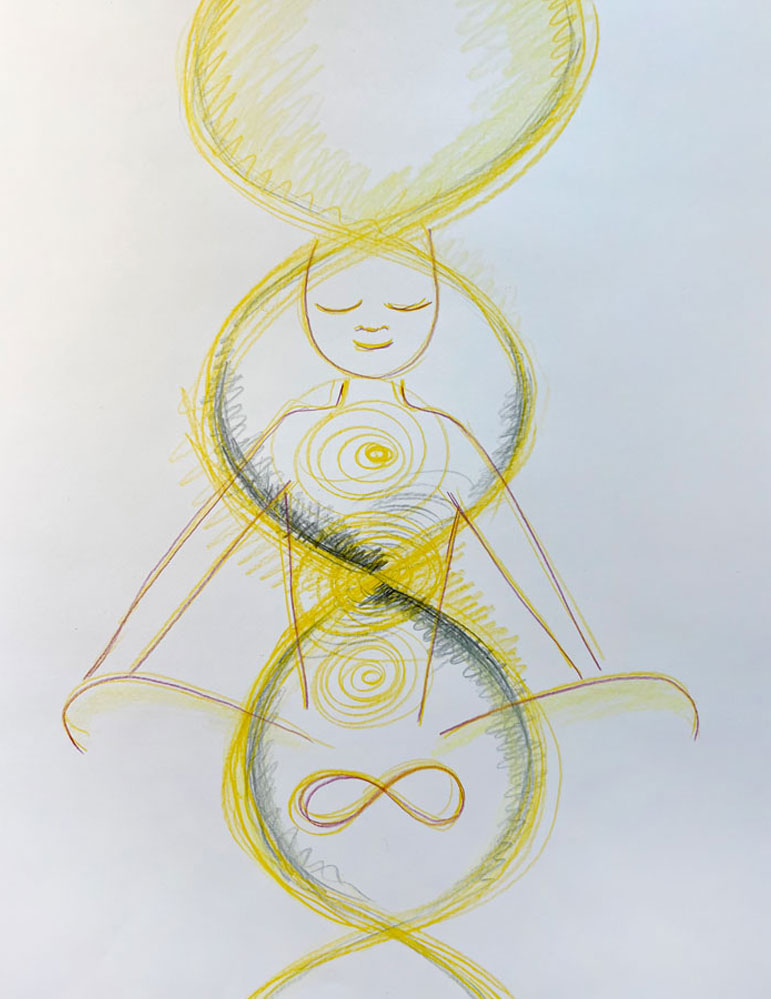 On va intensifier le flot de l’énergie : là où ça circule bien, ça peux devenir complètement extatique, et là où c’est bloqué, on va ouvrir avec notre souffle, accueillir avec notre coeur et aimer de tout notre être…